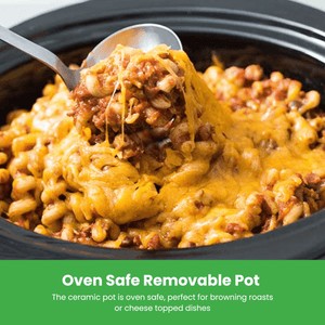 - Oven safe – The ceramic pot is oven safe, perfect for browning roasts or cheese topped dishes