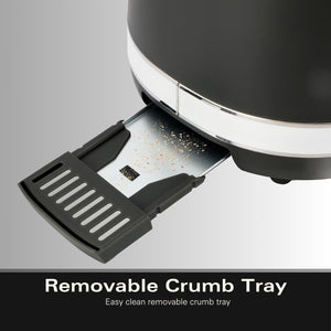 - REMOVABLE CRUMB TRAY – Features a removable crumb tray for easy cleaning, along with integrated cord storage to keep your worktop tidy and organised.