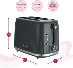 Hamilton Beach Toaster 2 Slice, Miami, 800W, Wide Slots, 7 Browning Levels, Defrost, Reheat & Cancel Functions, Removable Crumb Tray, Cord Storage, Charcoal Grey