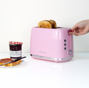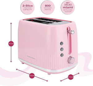 Hamilton Beach Toaster 2 Slice, Miami, 800W, Wide Slots, 7 Browning Levels, Defrost, Reheat & Cancel Functions, Removable Crumb Tray, Cord Storage, Flamingo Pink