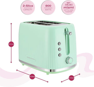 Hamilton Beach Toaster 2 Slice, Miami, 800W, Wide Slots, 7 Browning Levels, Defrost, Reheat & Cancel Functions, Removable Crumb Tray, Cord Storage, Mojito Mint