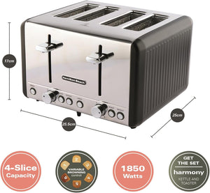 - 4 Slice Toaster: Add a sophisticated touch to your kitchen with this ultra-modern 4-slice toaster, designed with sleek colour options and lustrous chrome accents for a premium look.