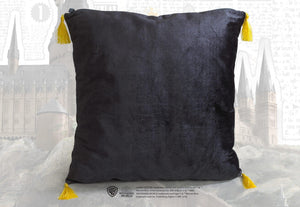 Measuring approximately 34cms square, this embroidered Hufflepuff house crest cushion contains a plush of the Hufflepuff badger mascot as featured in the Harry Potter films.