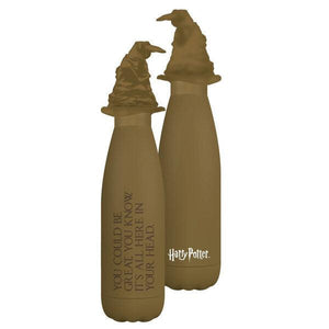 (Harry Potter) Metal water bottle 500ml, made of a double layer of stainless steel, with a perfect and safe closure system. The cap of this bottle is a small 3D reproduction of the Sorting Hat.
