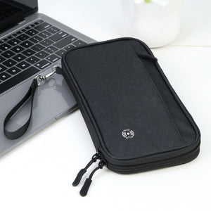 This clutch bag is ideal for travelers seeking a practical and stylish solution to organize and protect their important documents and cards while on the go.