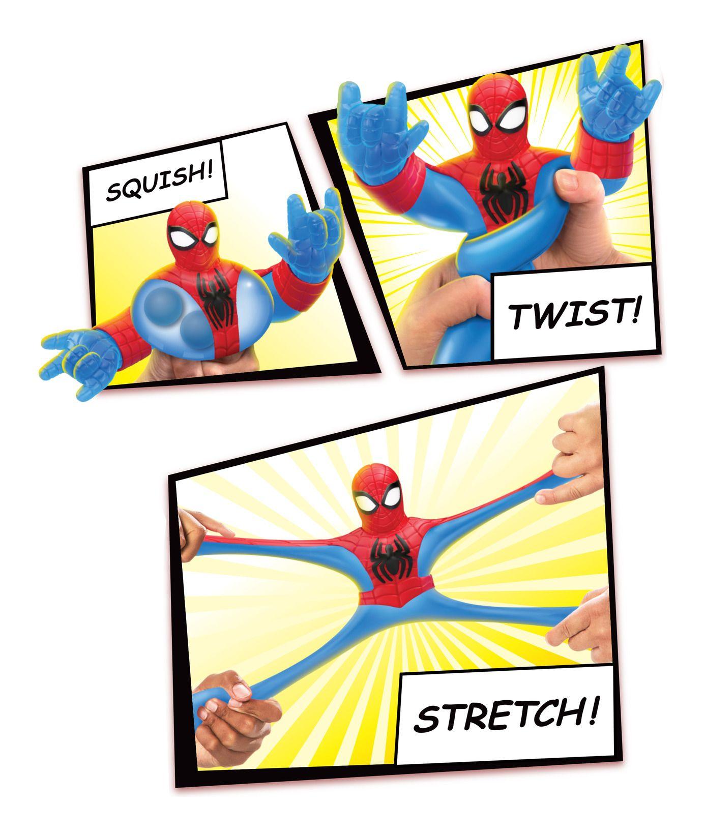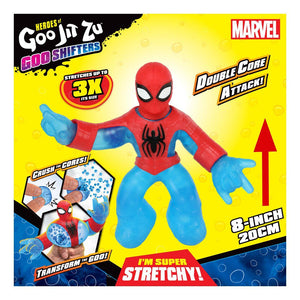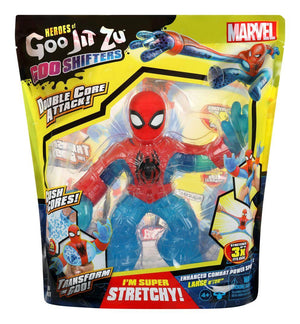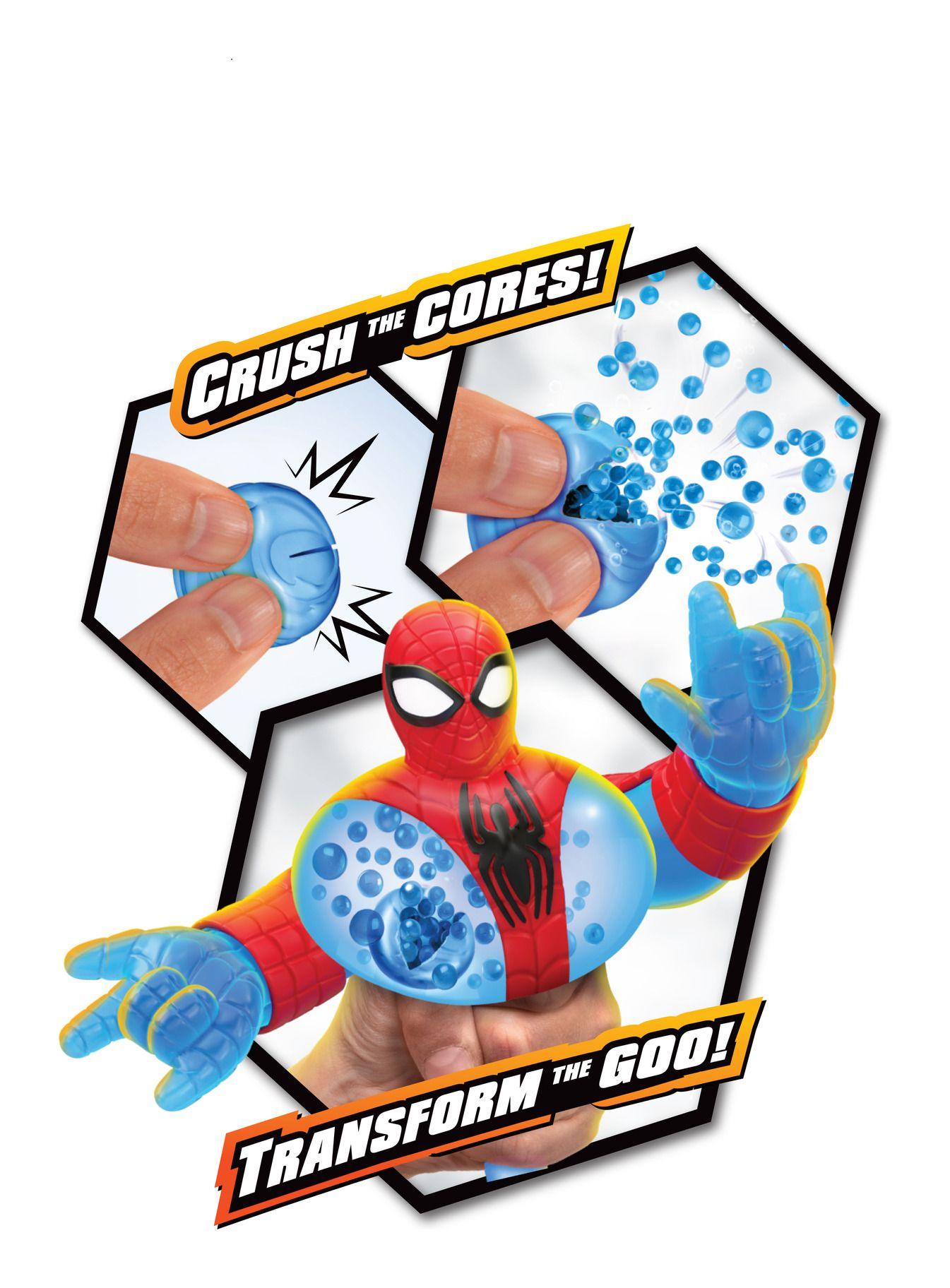 • Blue Strike Spider-Man is super stretchy! Kids will love to squish and squeeze his body! Heroes of Marvel themed Goo Jit Zu Goo Shifter Heroes all have different unique fillings. Discover bodies that are super mushy, super squishy, and super stretchy helping add to each character's personality. With a variety of coloured fillings that swirl around inside.
