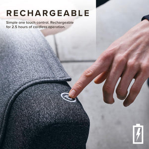- Featuring simple one touch control, the neck massager is rechargeable, providing 2.5 hours of cordless operation in one single charge.
