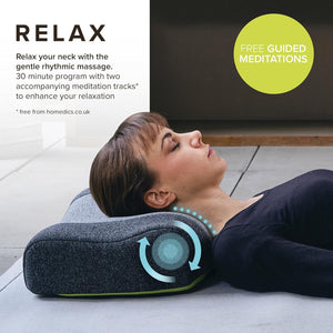 Homedics Zen Meditation Pillow – Memory Foam Neck Support Pillow, Essential Oil, Soothing Massage, Rechargeable, 30 Min Programme, 2.5 Hours Cordless Operation, Padded Headrest Cover, Grey