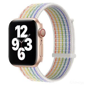 Hook and Loop Fastener Dual Section Watch Band Apple Watch Ultra 49mm / Series 8 &7 45mm / SE 2&6&SE&5&4 44mm / 3&2&1 42mm (Reflective Rainbow Colors)