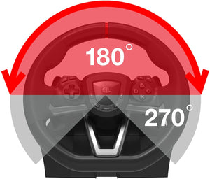 HORI brings the best in build-quality, customization options, and authentic racing simulation with the Racing Wheel APEX. HORI's design team has brought all the features and quality of a full-size racing wheel at an affordable price. Massive 270 degree turn-ratio - Completely programmable & adjustable - PS5, PS4 & PC compatible. The Racing Wheel APEX clamps securely to your table or racing wheel stand with sturdy clamps and steel parts. The full-size pedals are built to last. Change from 270 degree to 180 degree turn ratio on the fly and fine tune other settings such as dead zone, pedal sensitivity and more. Cross the finish line with the all new RWA: Racing Wheel APEX for PlayStation 5, PlayStation 4 and PC. Officially licensed by Sony.