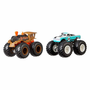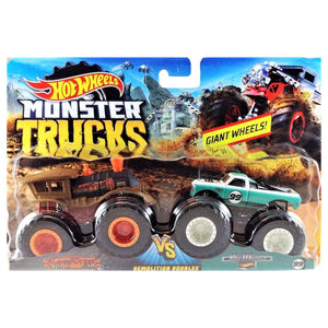 The Hot Wheels Monster Trucks 1:64 Scale Demolition Doubles trucks stand by to smash their arch-rivals! These two-packs of Monster Trucks squaring-off for epic crash attacks are purposely paired for head-to-head battles with their GIANT wheels and big personalities! Every package includes two opponents for great Monster Truck fun! Each sold separately, subject to availability.