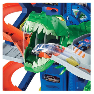 - Watch out for the hungry Robo T-Rex looking to devour some tasty Hot Wheels vehicles