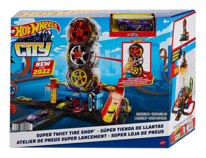 - When kids take the Hot Wheels City Super Twist Tire Shop for a spin, they discover new and exciting adventures rooted in the Hot Wheels tradition.