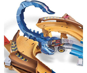 - Kids can use their Hot Wheels® car to loop the scorpion's tail or hit it head-on with their Monster Truck as a strategy to knock out the scorpion.