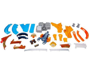 - Great big track with a cool banked turn. Kids can race around the boosted track set and switch the diverter when they're ready to defeat the scorpion!