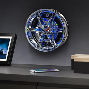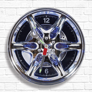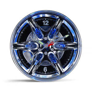"Tyreless" timepiece for the mechanic or car fanatic. The clock features one hand shaped like a screwdriver and one like a spanner, both circulating the round clock face. The neon light can be turned on and off, as required. The blue LED light looks great in a dimly lit or dark room. Ideal wall clock for the mechanic's workshop or garage.