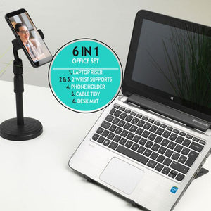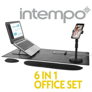 Intempo 6 in 1 Office Set, Working from Home Set, Home Office Accessories, Includes Phone Holder, Laptop Riser, Desk Mat, 2 Wrist Supports & Cable Tidy, Ideal for Video Calls