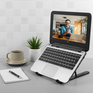 - Designed with users in mind, the portable laptop stand provides ventilation to your device, preventing overheating and keeping it cool.