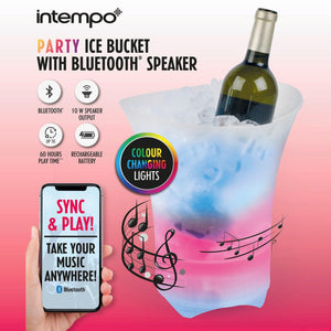 Intempo Ice Bucket Speaker - Party Bluetooth Speaker, USB Rechargeable, Colour Changing LED Lights, Up To 6 Hours Of Playtime, Beer & Wine Cooler, Prosecco/Champagne Bucket, AUX Included