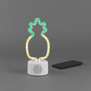 - This pineapple speaker is ideal for parties, equipped with a neon LED light up design that will bring the fun to any gathering.