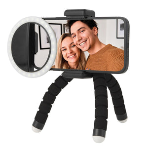 Intempo Vlogging Starter 2 In 1 Kit With Clip-On Ring Selfie Light & Tripod Smartphone Stand/Holder, Adjustable Brightness, Flexible Legs, Compatible With Most Phones - Grey