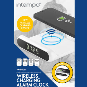 - This Intempo Wireless Charging Alarm Clock offers ultimate convenience right at your bedside so you can wake up on time with a charged phone.
