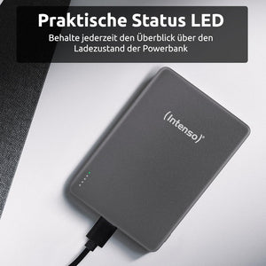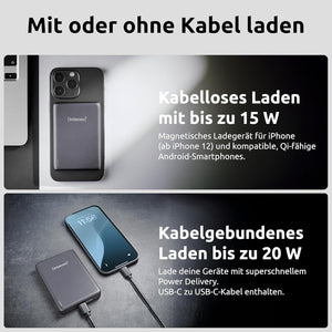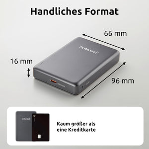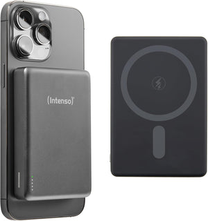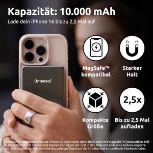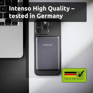 Intenso Magnetic Power Bank 10000 mAh - MagSafe Compatible, Wireless Charging 15W, USB-C PD 20W, for iPhone & Android - Tested in Germany - Grey