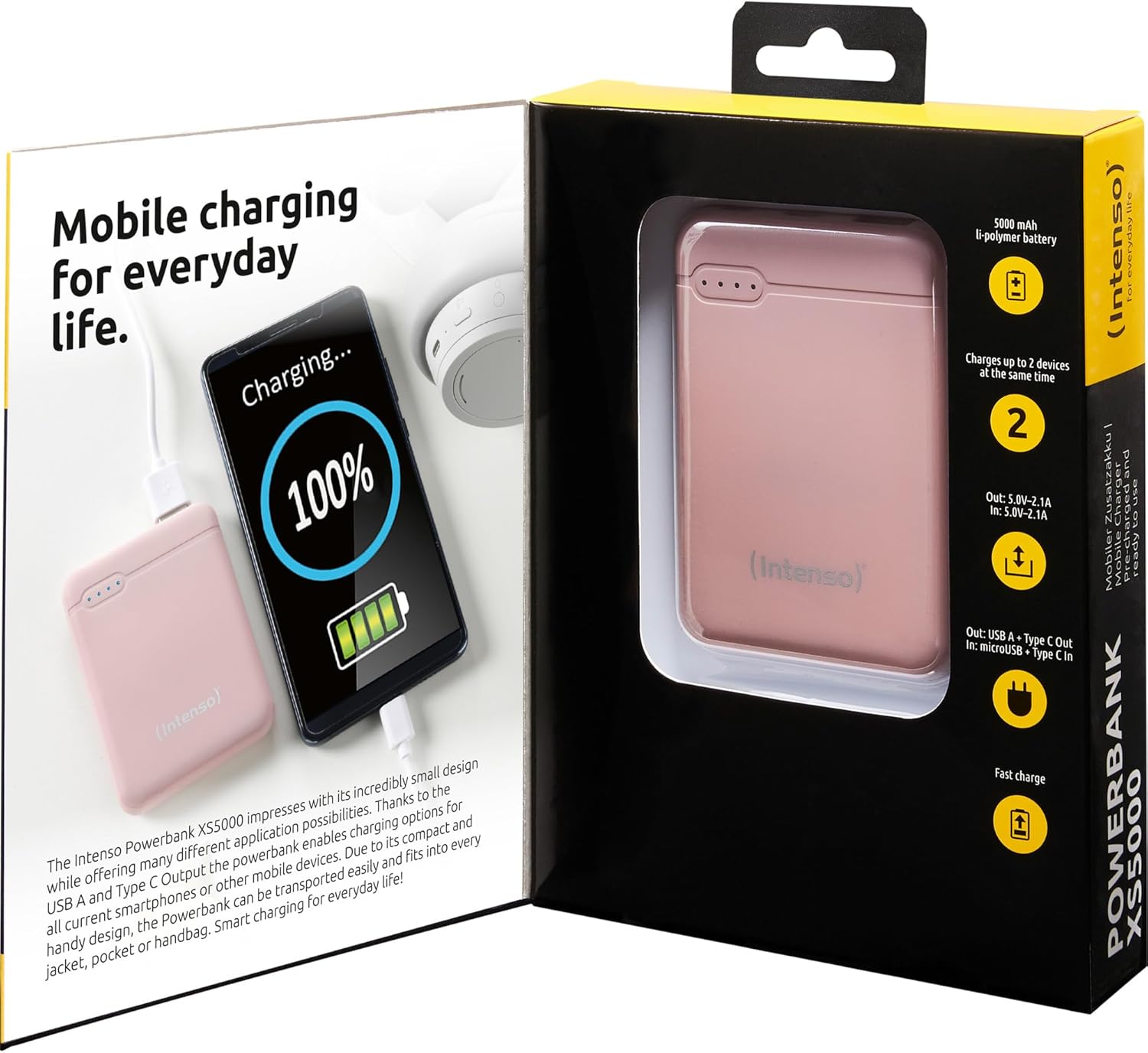 Intenso Power Bank XS5000, Portable Charger (5000mAh, Compatible with Smart Phone/Tablet PC and More) Pink