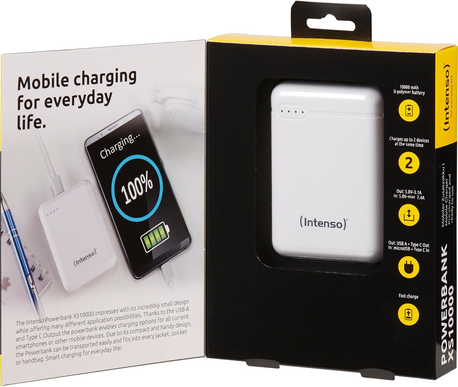 Scope of delivery: power bank, USB A to Type C charging cable, user manual