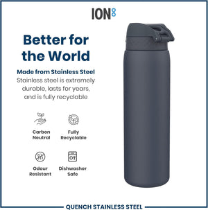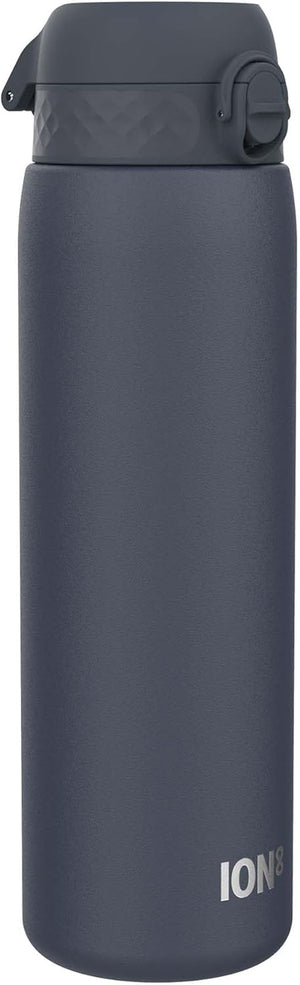 Ion8 Leak Proof 1 Litre Water Bottle, Stainless Steel, Ash Navy, 1200ml (40oz), Leak Proof, Easy to Open, Secure Lock, Dishwasher Safe, Fits Cup Holders, Carry Handle, Scratch Resistant, Metal Water Bottle
