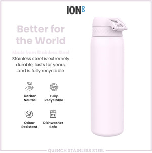 Ion8 Leak Proof 1 Litre Water Bottle, Stainless Steel, Lilac Dusk, 1200ml (40oz), Leak Proof, Easy to Open, Secure Lock, Dishwasher Safe, Fits Cup Holders, Carry Handle, Scratch Resistant, Metal Water Bottle