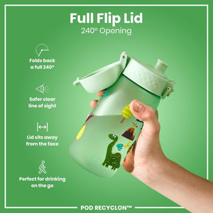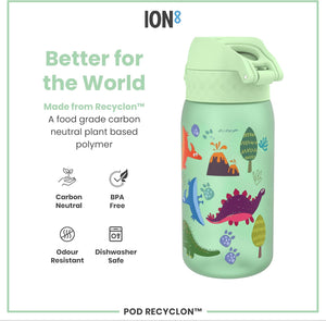Ion8 Leak Proof Kids Water Bottle, Dinosaurs, 350ml (12oz), Leak Proof, Easy to Open, Secure Lock, Dishwasher Safe, BPA Free, Carry Handle, Hygienic Flip Cover, Easy Clean, Odour Free, Carbon Neutral