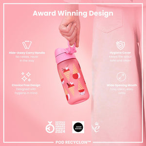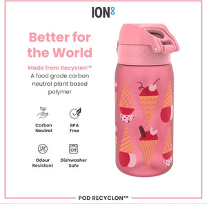 Ion8 Leak Proof Kids Water Bottle, Ice Cream, 350ml (12oz), Leak Proof, Easy to Open, Secure Lock, Dishwasher Safe, BPA Free, Carry Handle, Hygienic Flip Cover, Easy Clean, Odour Free, Carbon Neutral