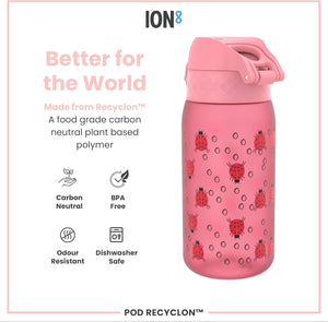 Ion8 Leak Proof Kids Water Bottle, Ladybugs, 350ml (12oz), Leak Proof, Easy to Open, Secure Lock, Dishwasher Safe, BPA Free, Carry Handle, Hygienic Flip Cover, Easy Clean, Odour Free, Carbon Neutral