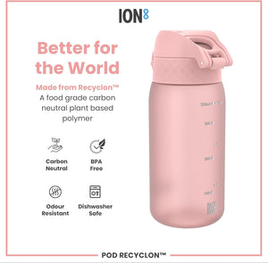 Ion8 Leak Proof Kids Water Bottle, Rose Quartz, 350ml (12oz), Leak Proof, Easy to Open, Secure Lock, Dishwasher Safe, BPA Free, Carry Handle, Hygienic Flip Cover, Easy Clean, Odour Free, Carbon Neutral