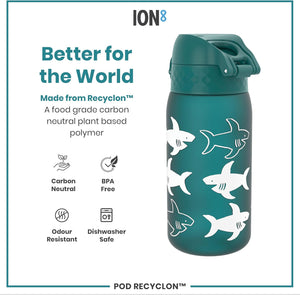 Ion8 Leak Proof Kids Water Bottle, Shark, 350ml (12oz), Leak Proof, Easy to Open, Secure Lock, Dishwasher Safe, BPA Free, Carry Handle, Hygienic Flip Cover, Easy Clean, Odour Free, Carbon Neutral