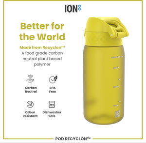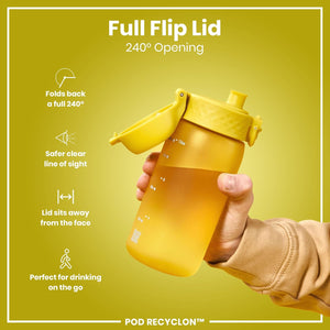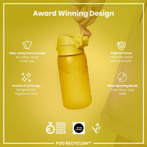 Ion8 Leak Proof Kids Water Bottle, Yellow, 350ml (12oz), Leak Proof, Easy to Open, Secure Lock, Dishwasher Safe, BPA Free, Carry Handle, Hygienic Flip Cover, Easy Clean, Odour Free, Carbon Neutral
