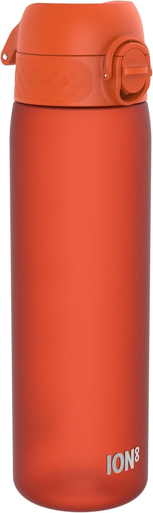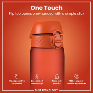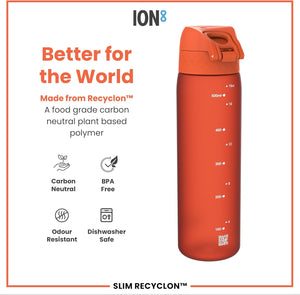 Ion8 Leak Proof Slim Water Bottle, Hearty Orange, 500ml (18oz), Easy to Open, Secure Lock, Dishwasher Safe, BPA Free, Hygienic Flip Cover, Carry Handle, Fits Cup Holders, Easy Clean, Carbon Neutral