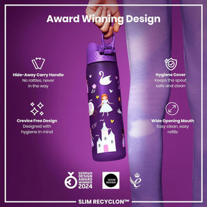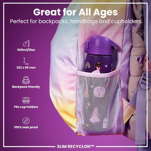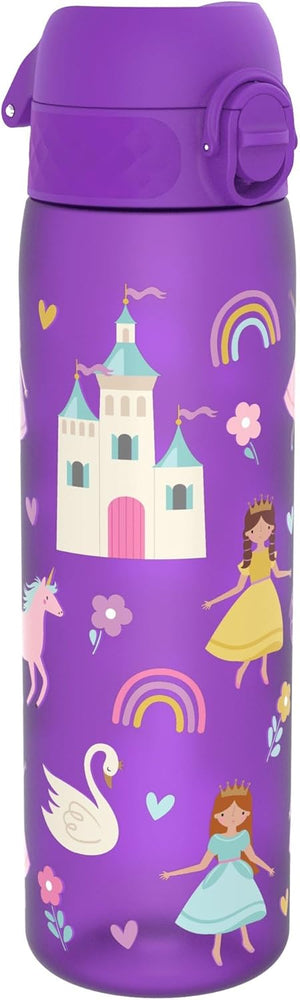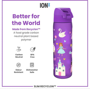 Ion8 Leak Proof Slim Water Bottle, Princess, 500ml (18oz), Easy to Open, Secure Lock, Dishwasher Safe, BPA Free, Hygienic Flip Cover, Carry Handle, Fits Cup Holders, Easy Clean, Carbon Neutral