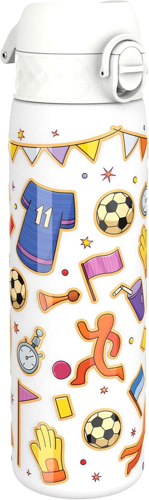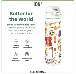 Ion8 Leak Proof Slim Water Bottle, Vacuum Insulated, Football, 500ml (17oz), Leak Proof, Easy to Open, Secure Lock, Dishwasher Safe, Fits Cup Holders, Carry Handle, Scratch Resistant, Metal Water Bottle