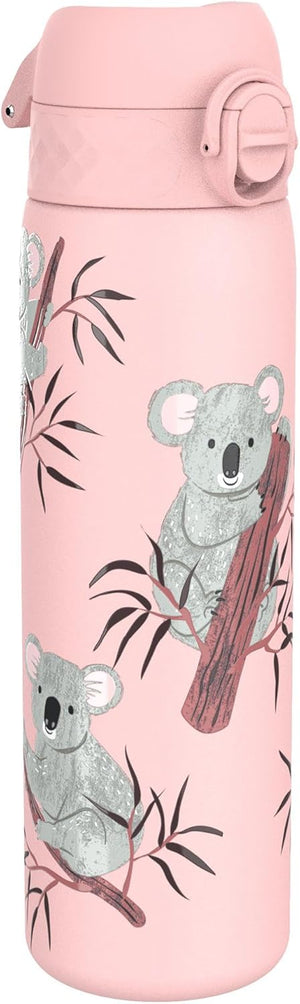 Ion8 Leak Proof Slim Water Bottle, Vacuum Insulated, Koala, 500ml (17oz), Leak Proof, Easy to Open, Secure Lock, Dishwasher Safe, Fits Cup Holders, Carry Handle, Scratch Resistant, Metal Water Bottle