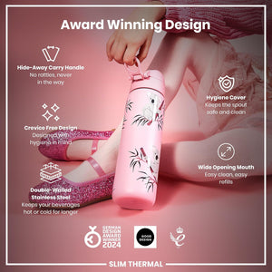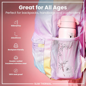 - PERFECTLY PORTABLE – As slim as a soda can, this leakproof bottle fits into cup holders and backpacks with ease. A smart thermos for kids or a slim thermal flask for active adults.