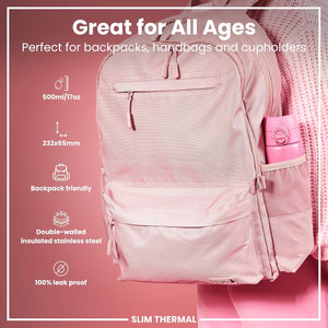 - PERFECTLY PORTABLE – As slim as a soda can, this leakproof bottle fits into cup holders and backpacks with ease. A smart thermos for kids or a slim thermal flask for active adults.