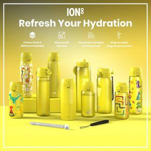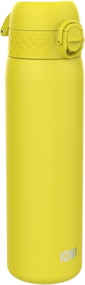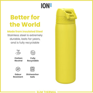 Ion8 Leak Proof Slim Water Bottle, Vacuum Insulated, Yellow, 500ml (17oz), Leak Proof, Easy to Open, Secure Lock, Dishwasher Safe, Fits Cup Holders, Carry Handle, Scratch Resistant, Metal Water Bottle