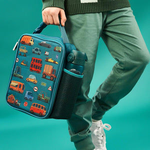 Ion8 Lunch Bag, Insulated, Automobiles, Medium, Easy Access 3-Sided Zip, Write-On Name Patch, Freshness & Insulation for 6 Hours, Elasticated Mesh Pocket for Bottles, Machine Washable, Polyester Material
