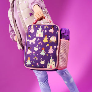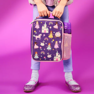Ion8 Lunch Bag, Insulated, Princess, Medium, Easy Access 3-Sided Zip, Write-On Name Patch, Freshness & Insulation for 6 Hours, Elasticated Mesh Pocket for Bottles, Machine Washable, Polyester Material