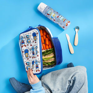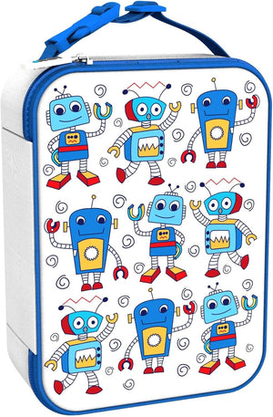 Ion8 Lunch Bag, Insulated, Robots, Medium, Easy Access 3-Sided Zip, Write-On Name Patch, Freshness & Insulation for 6 Hours, Elasticated Mesh Pocket for Bottles, Machine Washable, Polyester Material