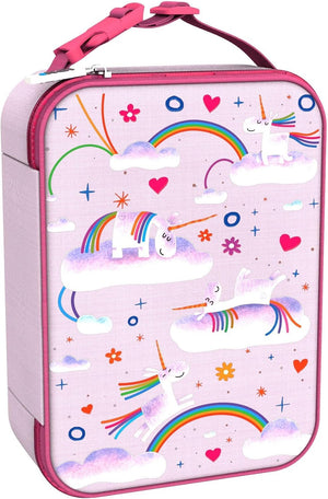 Ion8 Lunch Bag, Insulated, Unicorn Rainbows, Medium, Easy Access 3-Sided Zip, Write-On Name Patch, Freshness & Insulation for 6 Hours, Elasticated Mesh Pocket for Bottles, Machine Washable, Polyester Material