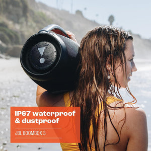 - IP67 dust and water proof: To the pool. To the park. The JBL Boombox 3 is IP67 dustproof and waterproof, so you can bring your speaker anywhere, rain or shine.