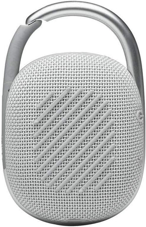 JBL Clip 4 Bluetooth portable speaker with integrated carabiner, waterproof and dustproof, White